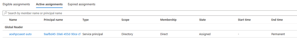 The last tab is dedicated to Azure Resource Manager roles. It will show you every single role that is assigned to users and service principals, no matter the scope (Management Group, Subscription, or even more granular scopes). In this view, as well as in the Microsoft Entra ID Roles view, you can search for a specific term, such as a username. If the user or the service principal has an indirect role assignment coming from an Microsoft Entra ID group assignment, you’ll also see that indication and the respective group name in the Assignment column.