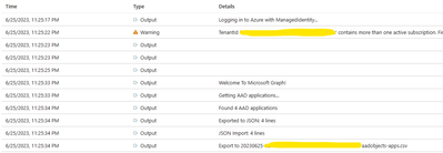 Due to memory restrictions on the Azure Automation sandboxes, if your Microsoft Entra ID tenant has more than 50K users, groups or applications, the Microsoft Entra ID exports jobs may be suspended and you will end up with incomplete information. To work around this limitation, you must implement Azure Automation Hybrid Worker and schedule your jobs to run in a Hybrid Worker group with more compute resources.