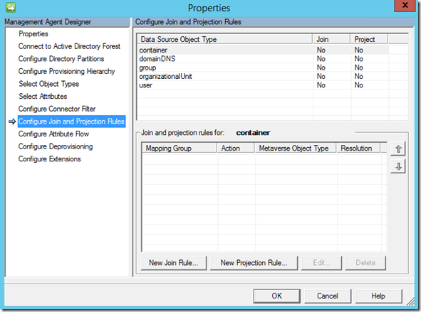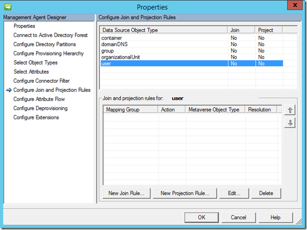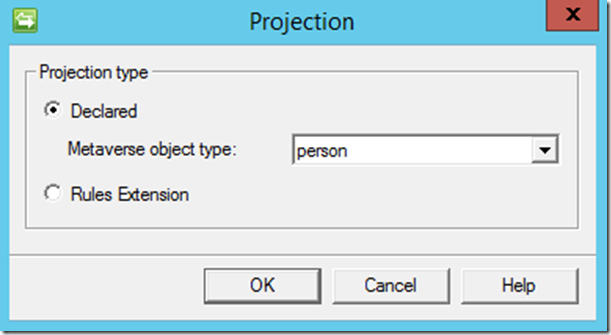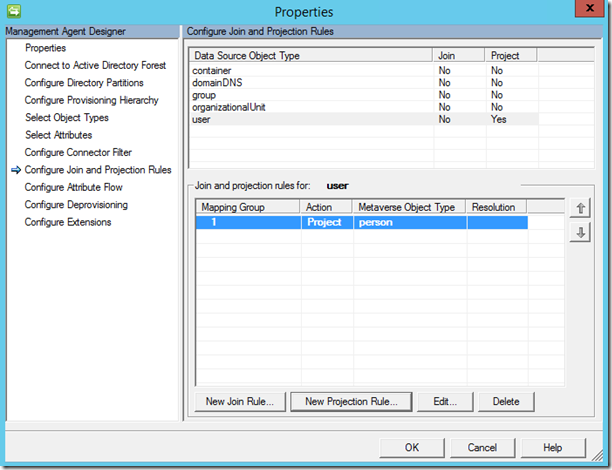 Important note: Just like attribute flows with Synchronization Rules and MA’s if you configure Projection at the MA as well as on the MA the MA always has precedence.
