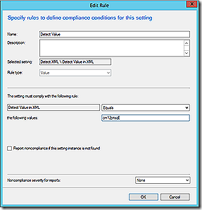 Many examples exist for mainstream detection methods, such as registry or file system. It may well be a struggle to find examples of less mainstream options such as reading an XML file or the IIS metabase. Having also been frustrated with the lack of examples I finally decided to illustrate each one. The purpose of this post, then, is not to cover the capabilities of Compliance Settings in detail but, by illustration, to show examples of how the various methods could be used. Even with the examples below there is much more that could be illustrated. Hopefully the examples will be enough to help you explore the full capabilities without the headache of having to figure it all out from scratch.