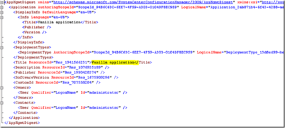 CI 45367 SDMPackageDigest – in the body of this definition we see the name of the application we just created.