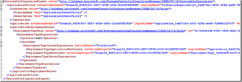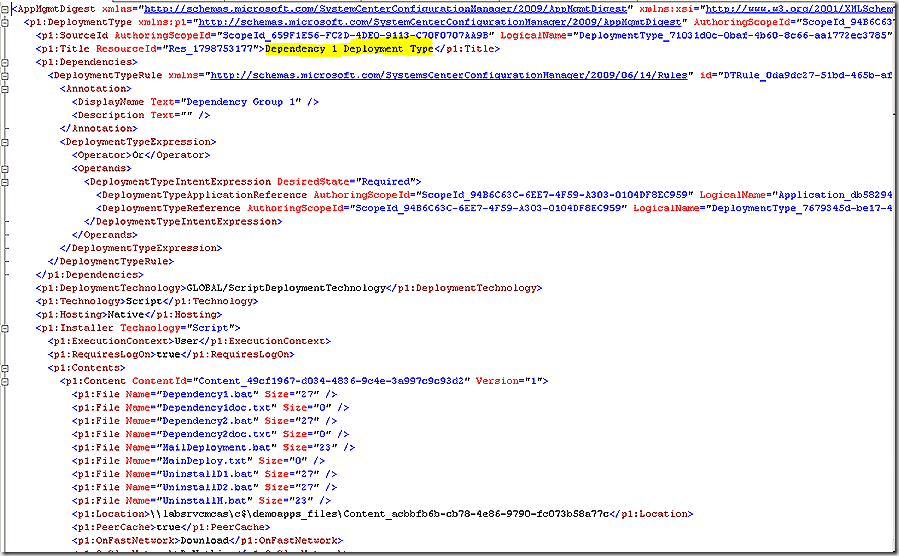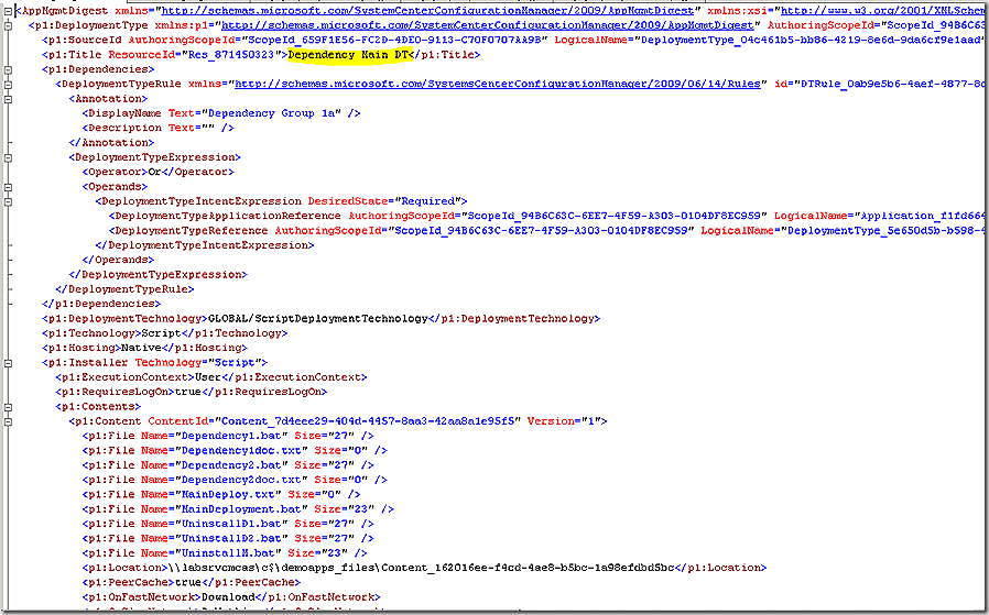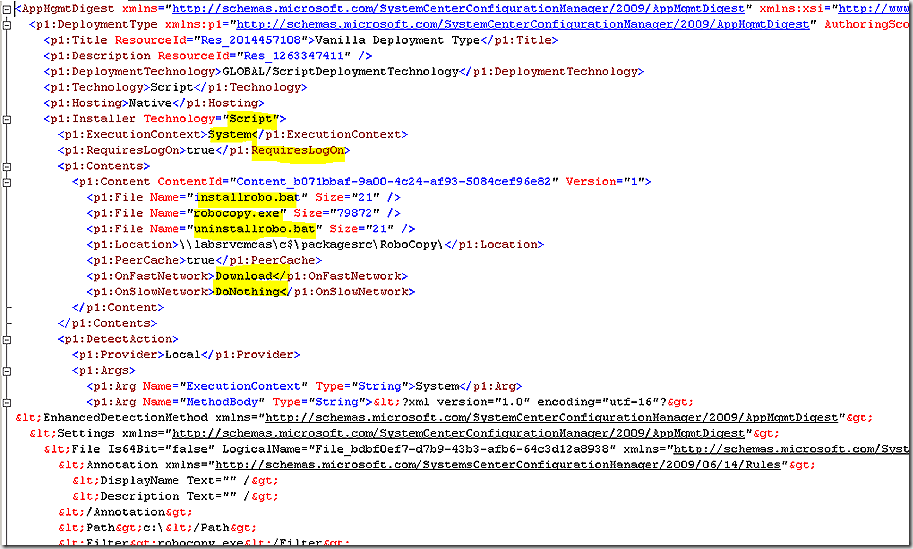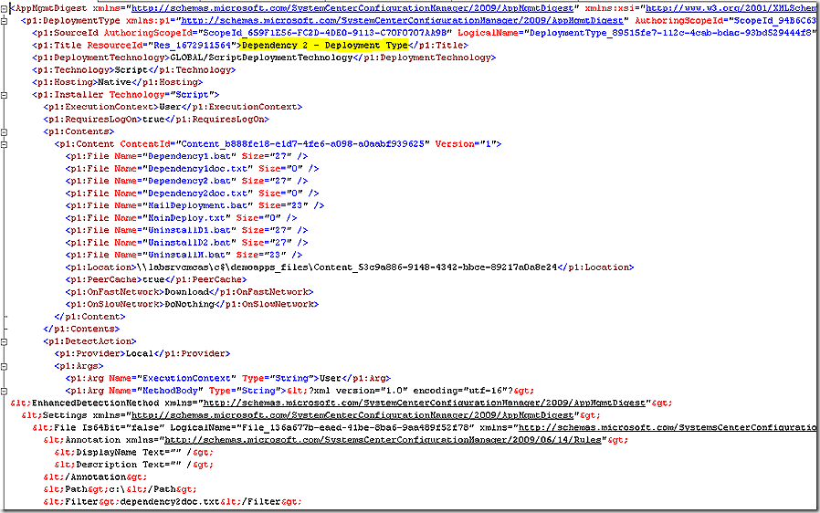 CI 45368 SDMPackageDigest – in the body of this definition we see various settings for the deployment type, including the content included in the source directory.