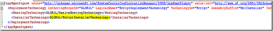 This CI defines that the application deployment type configured is to be installed using the Script method – which is selected on the initial page of configuring the deployment type. There are also CI’s to define MSI, App-V and other deployments.