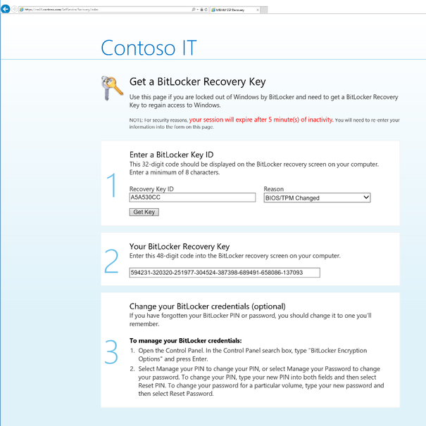 - Users able to get single-use key for unlocking a BitLocker encrypted device. Once this key is used, it generates a new key for the device.