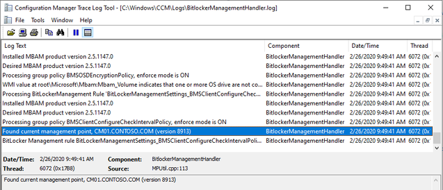- Check if the client can find Management from BitlockerManagementHandler.log