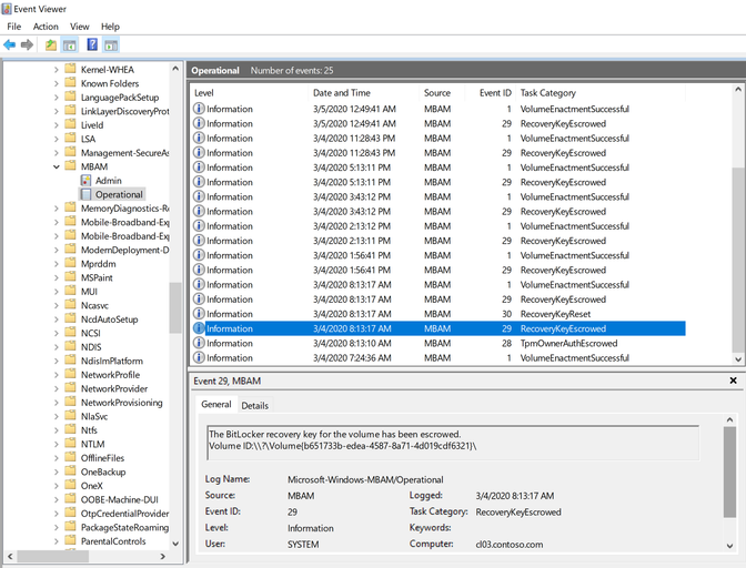 - Add computer to Bitlocker Management Policy deployed collection. refer client section to monitor policy deployment. You can monitor policy escrowed to configmgr on client from Applications and Services Logs\Microsoft\Windows\MBAM\Operational in event Viewer.