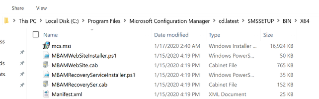 - Copy the files MBAMWebSiteInstaller.ps1 and MBAMWebsite.cab from configmgr installation folder \cd.latest\SMSSETUP\BIN\X64