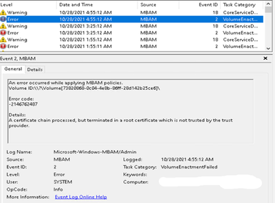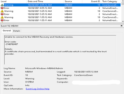 - Check Event Viewer logs in Applications and Services Logs\Microsoft\Windows\MBAM\ for events