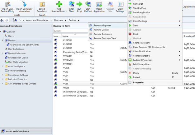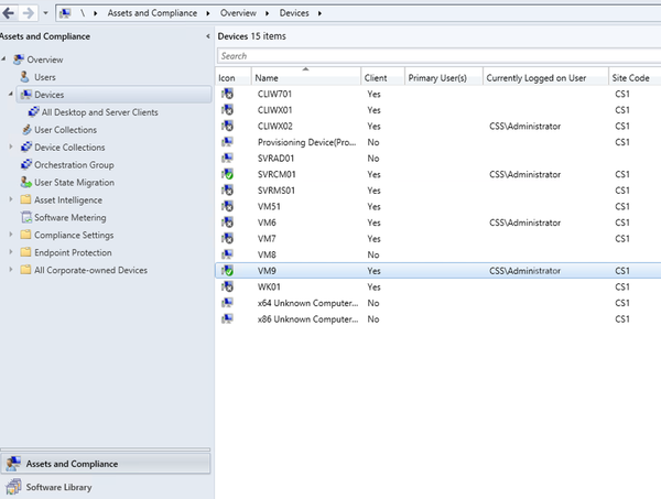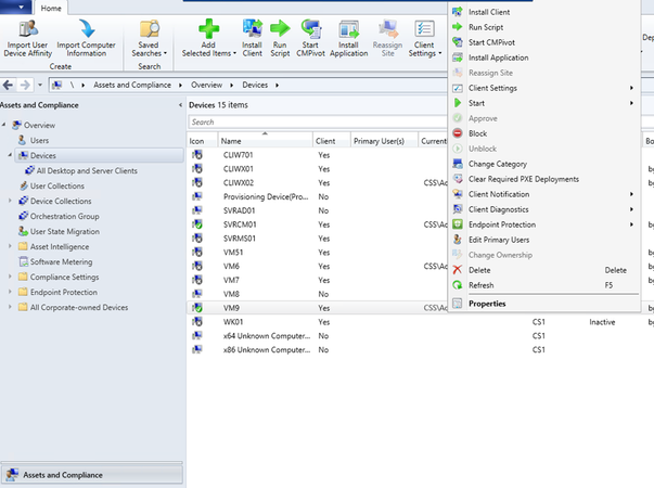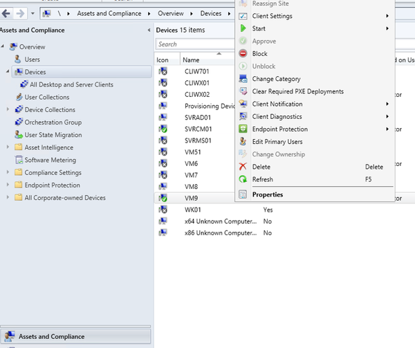 - Launch ConfigMgr Console, In the Assets and Compliance workspace, go to either the Devices or Device Collections node.