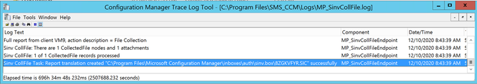 - On the Management point, you can monitor from MP_SinvCollFile.log