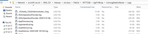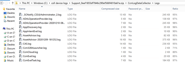- After logs are saved to your desired destination folder, you can browse to CcmLogDataCollector folder and view collected log files.