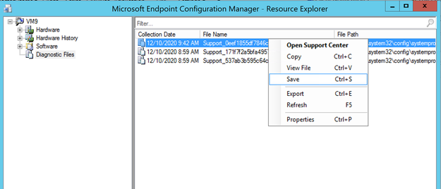 - In the resource explorer, choose Diagnostic files and then right click on latest files. Click on open Support Center