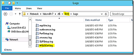 Well now that's interesting. First, note the log location is in the SMS folder. More interesting – note the only standard WSUS log is the WSUSCtrl.log. So what does this mean? Let’s go back to the master SUP, SUP a, and look at a couple of logs.