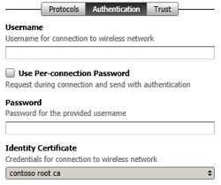 15. Next, select Authentication and choose the SCEP identity certificate that was previously configured as outlined in iPad/Iphone Certificate Issuance blog.