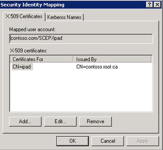 5. Associate the newly created certificate to the placeholder AD DS domain computer account manually created through Name Mappings