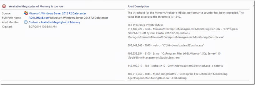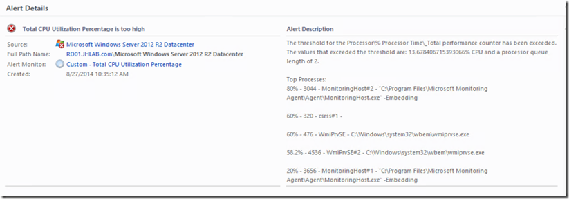 - The only change is a modification to the VBScript to get the Top 5 processes and include them in the Property Bag and Alert.
