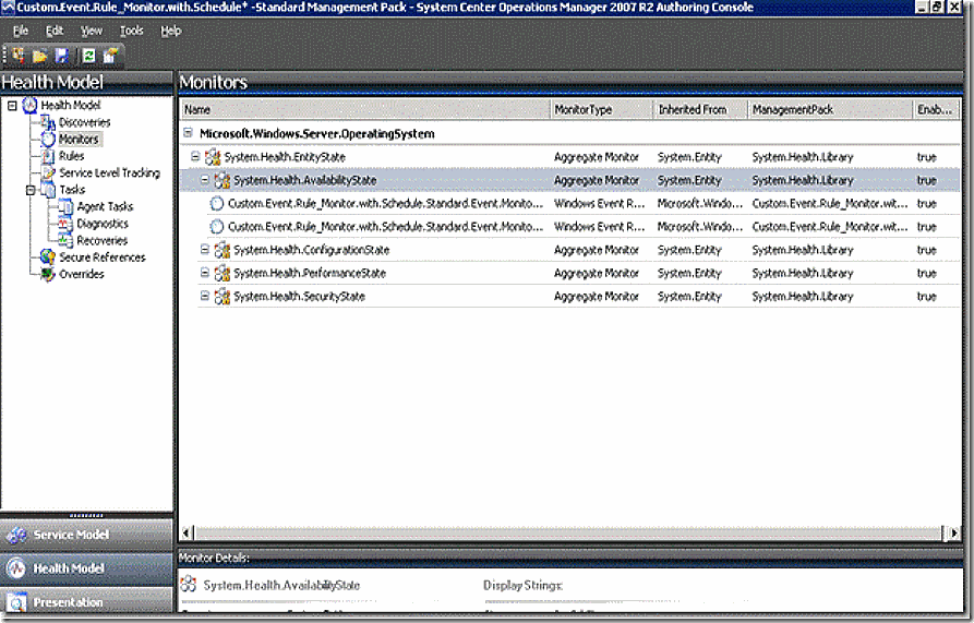OK – now lets add our schedule to the second monitor – are you excited? 🙂 Remember earlier that I mentioned that every rule and monitor has a data source and that the data source can vary depending on where we are obtaining data – it can even be custom. For monitors the data source is contained in a section called the monitortype. So, in order to introduce a schedule (and other modifications – but thats beyond the scope of this blog entry) we are REALLY interested in the monitor type because that module is where we introduce our customizations.