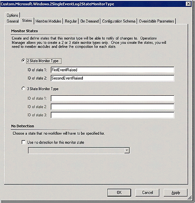 On the states tab we see that this monitortype is defined as a two state monitor. The ID’s listed can be customized but doing so would require additional edits to the monitor itself which references these values.