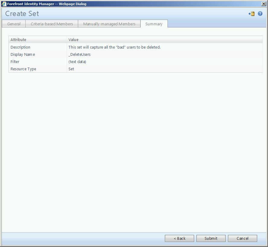 Here we see the target resource is the other set we created (which contains the bad users). Note that we have selected “All Attributes”.