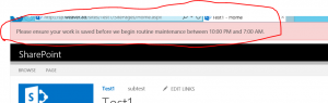 Recently I worked with one of my customers on deciding how to streamline end user communication, and we of course started talking about the Maintenance window in SharePoint (See my blog for more information).