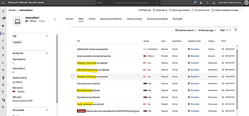 - We run the " known ransomware infection" simulation by Safe breach for testmachine1