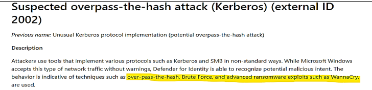 MD for Identity Alert about overpass the hash attack:
