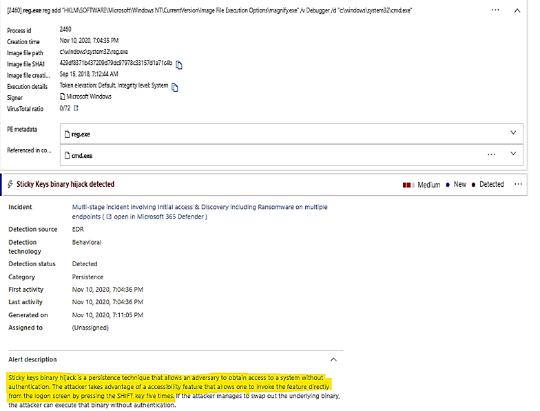 - Response time is critical to prevent damage from further steps down the path of attacking sequence, from reconnaissance, credential compromise to later movement, domain dominance and exfiltration, data encryption, data deletion.