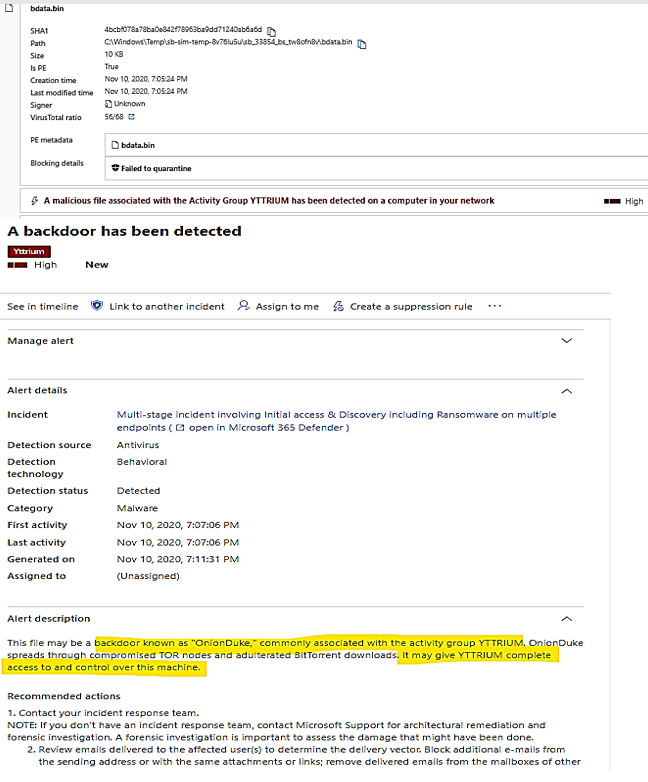 - The actor could repeat the attack multiple times with different variants of Ryuk, the attack period could be prolonged for days or weeks with multiple backdoors been used.