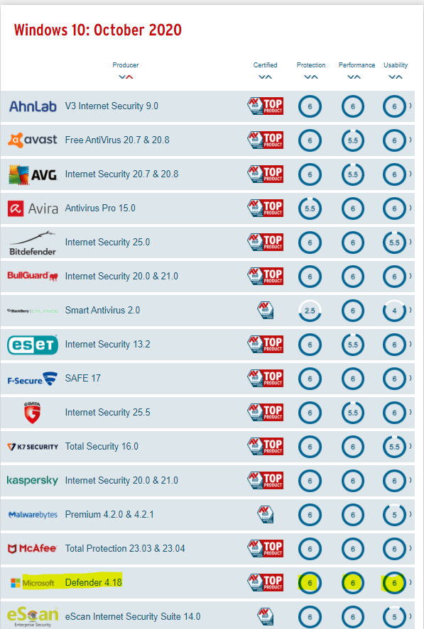 Test antivirus software for Windows 10 - October 2020 | AV-TEST (av-test.org)