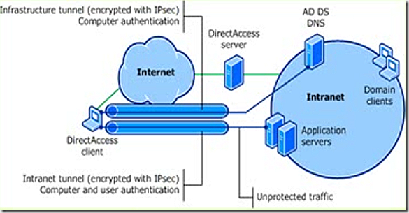 First, what specifically is Direct Access. Direct Access is a way to connect a system seamlessly and securely to the corporate network from any internet connection. Direct Access communication is encrypted either from the client to the edge of the corporate network or from the client to the target server inside of the corporate network. Direct Access has full support for smart cards as well as other authentication security. Also, systems connecting via Direct Access don’t need to use any VPN solution – the connection is automatic after connecting to the internet.
