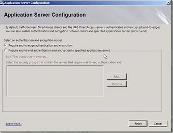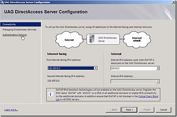 Note here that ISATAP is enabled to handle translation since Direct Access is operating inside an IPv4 network.