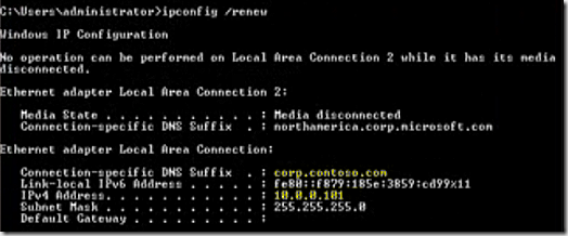 Reviewing the IP settings after my IP renew I can tell I’m on the corporate network and have a 10. IP address – exactly as it should be when on the internal network. A further test shows that I’m able to access a server share on my SCCM server from this client.