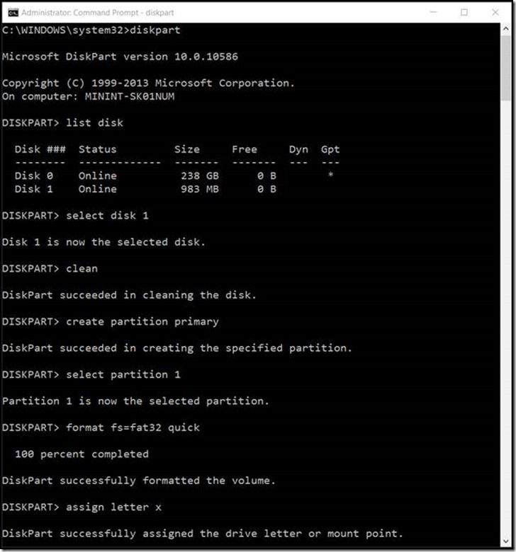 Hi everybody! My name is Stephen Mathews and you may know me from my 3-part PowerShell Basics video series on Taste of Premier . Today I'm here to show how to create a bootable Windows PreInstallation Environment USB drive to use on our Microsoft Surface devices. I was onsite with one of my customers, as a Premier Field Engineer often is, and was asked how to wipe a Surface device. My go-to method is to insert my trusty Windows-To-Go USB and boot into my Operating System, and then use Disk Manager to delete and format the host's now attached hard drive; unfortunately, I had left my WTG drive at home. The alternate method I use to access WinPE is to PXE boot the machine into the customer's Microsoft Deployment Toolkit on their Windows Deployment Server; however, the customer’s Surface had no network connectivity. You can also use MDT to create bootable media allowing access to the WinPE directly on a USB drive instead of using PXE boot, alternately, most image customization tools introduce a WinPE prior to deployment as well. Alas, the admins I was working with did not have access to the MDT server and I didn't want them to have to use DISM, ImageX, or BCDEdit programs either, I just needed a simple WinPE that they could create at their desks. After quite a few rounds of trial and error, I arrived at a 3 step solution: Step 1: Create a bootable USB drive Attach an empty (or soon to be erased) USB drive to your system. I used an ancient 1GB USB flash drive that the customer found in an equally ancient desk drawer. c:\windows\system32> diskpart diskpart> list disk diskpart> select disk # diskpart> clean diskpart> create partition primary diskpart> select partition 1 diskpart> active diskpart> format fs=fat32 quick diskpart> assign letter x Reference: Prepare the UFD Step 2: Download and Install the WinPE tools Download the Windows ADK for your operating system here . Install Windows PreInstallation Environment (Windows PE), you can deselect the other components. Open the Deployment and Imaging Tools and run the copype command with the amd64 architecture. <ADK Install Path> copype.cmd amd64 c:\temp\winpe_amd64 Copy the resulting media folder to the root of the USB drive. In the screenshot, I'm sending the output to a log file, this is not necessary. The “/xd” switch is skipping the additional language copies of the boot files, that can be dropped as well. The copy may take a few minutes based on the speed of your USB device. robocopy c:\temp\winpe_amd64\media x: /e /xd *-* Reference: Set up a Windows PE build environment Step 3: Boot from USB drive Change the boot order in the Surface device to put USB before the SSD. It took me quite a few attempts to get the right timing of Power + Volume Up buttons, I recommend patience during this process. Configure Alternate System Boot Order > USB -> SSD At this point, it should boot directly into the USB drive. The screen will pause at the Surface logo while the USB is read. If it goes directly to the spinning dots, then it did not boot to USB successfully. Pardon the image, although I think the faux sunburst is a nice touch. Note: For older Surfaces and/or if there's no boot order setting, press Power + Volume Down to boot from USB. Reference: How do I use the BIOS/UEFI? Once I was in the WinPE I used the diskpart commands in Step 1 to delete all the disk’s partition information, re-partition into a single partition, and finally format it without the quick parameter since we wanted to overwrite the entire drive. There you go, a simple USB bootable WinPE with all your favorite System32 executables available, all wrapped in a 250MB package. I hope this was useful to you and saves you time in the future. Thanks for reading, Stephen Mathews, Platforms PFE