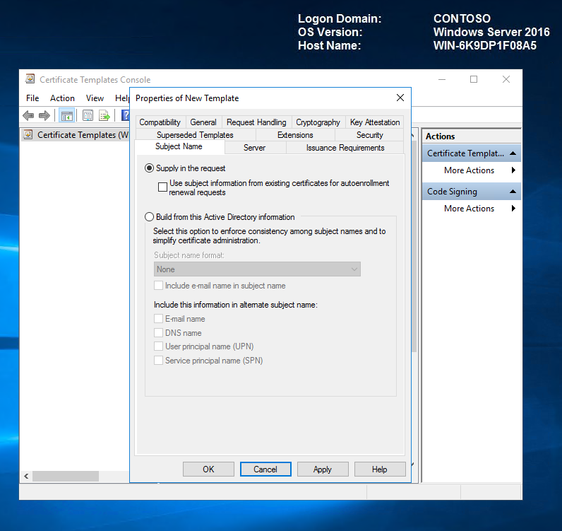 On the General tab, specify the Template display name and Template name. We will call it DG Catalog Signing Certificate.