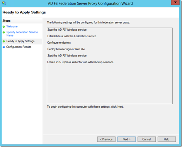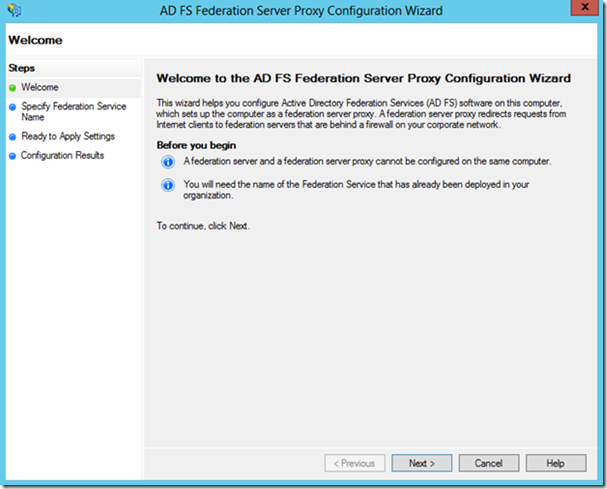 After the SSL and DNS has been configured we are now ready to run the ADFS Proxy Configuration wizard.