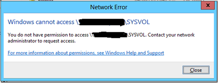 You deploy a shiny new Windows Server 2012 Virtual Machine on Hyper-V or VMWare, and then you notice that no file shares are accessible. For example, on a Domain Controller you can’t access the SYSVOL share. You tend to get an error message like so: