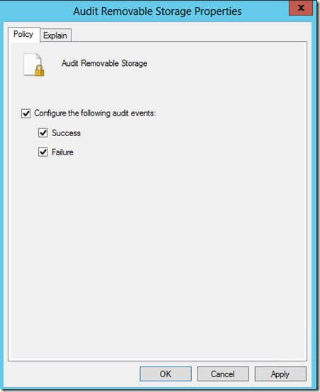 You have Audit Removable Storage explicitly enabled for Success and/or Failure. This configuration can be found at Windows Settings, Security Settings, Advanced Audit Policy Configuration, System Audit Policies, Object Access, Audit Removable Storage