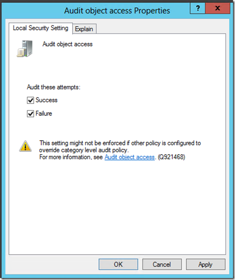 Or, you have Audit Object Access Policy Success and or Failure, which implicitly enables all object access. This setting is found at Windows Settings, Security Settings, Local Policies, Audit Policy, Audit Object Access