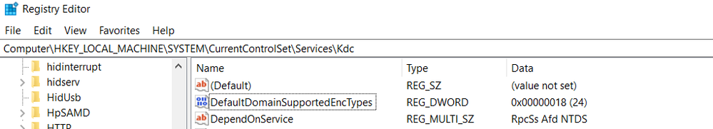 * In our labs, setting the DefaultDomainSupportedEncTypes to 0x1C caused login issues on Windows Server 2003 and Windows XP. If you still have these operating systems, test this value carefully in your environment. We tried to set the key to 0x24 and we did not observe the same issues.