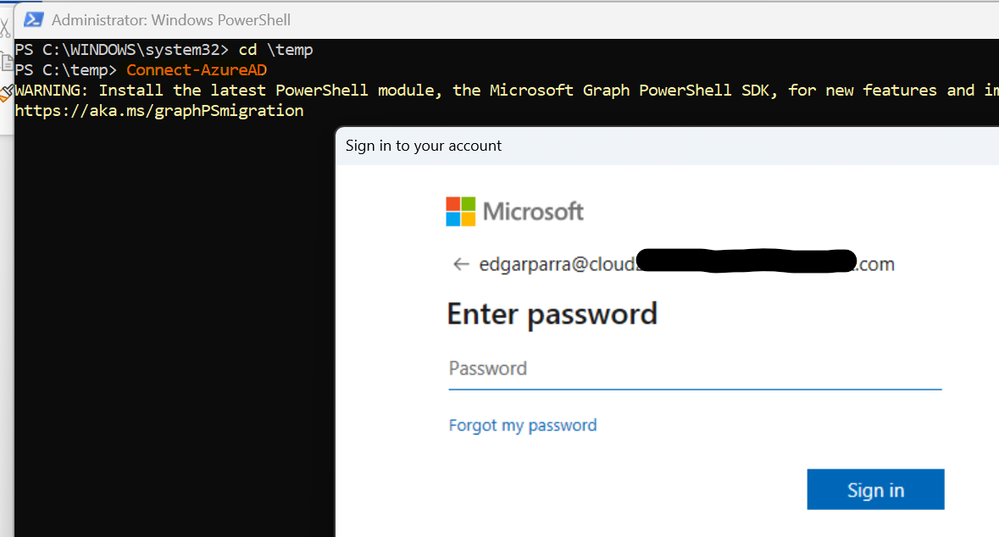 Use this command to connect to EntraID: Connect-AzureAD validate your credentials and them switch to the path where the script is, if you are not already there, and then execute the script in the PowerShell window: