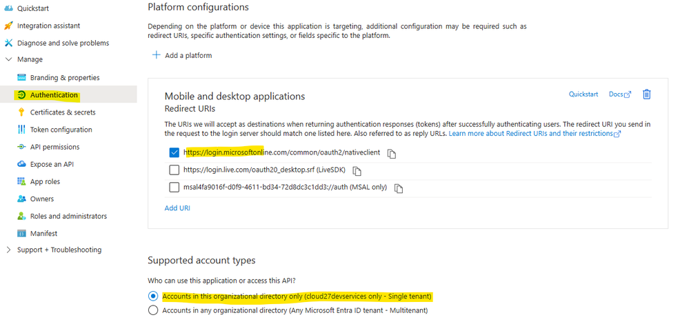 After these parameters are configured in EntraID, you need to grab the following parameters from EntraID and insert this in the PowerShell script: