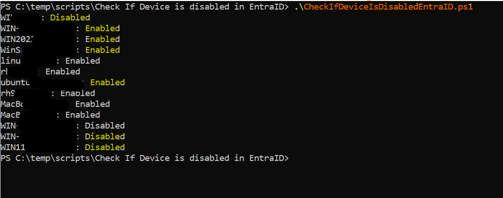 Single entry per line, no space at the end. As you can see based on the device names from Fig 5. the script works for any supported OS as long as the machine is registered in EntraID.