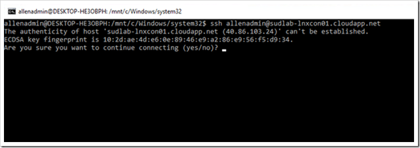 Running remote command on Linux container host using SSH on Bash on Ubuntu on Windows: