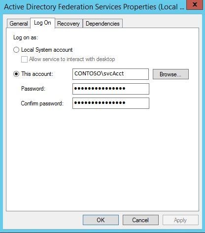 So, where is this coming from? In our case, the service account on the Active Directory Federation Services service was configured with the Log On account configured in UPN format. While this is perfectly valid for a service account as far as Windows is concerned, the Azure AD Connect installation has a problem with it.