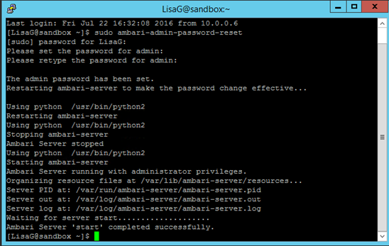 - You will be prompted to enter the password. Ambari server will restart.