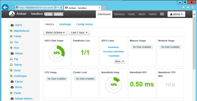You can then log in to the Ambari portal as the admin user. To connect to Ambari you just browse using the IP of the sandbox and specify port 8080