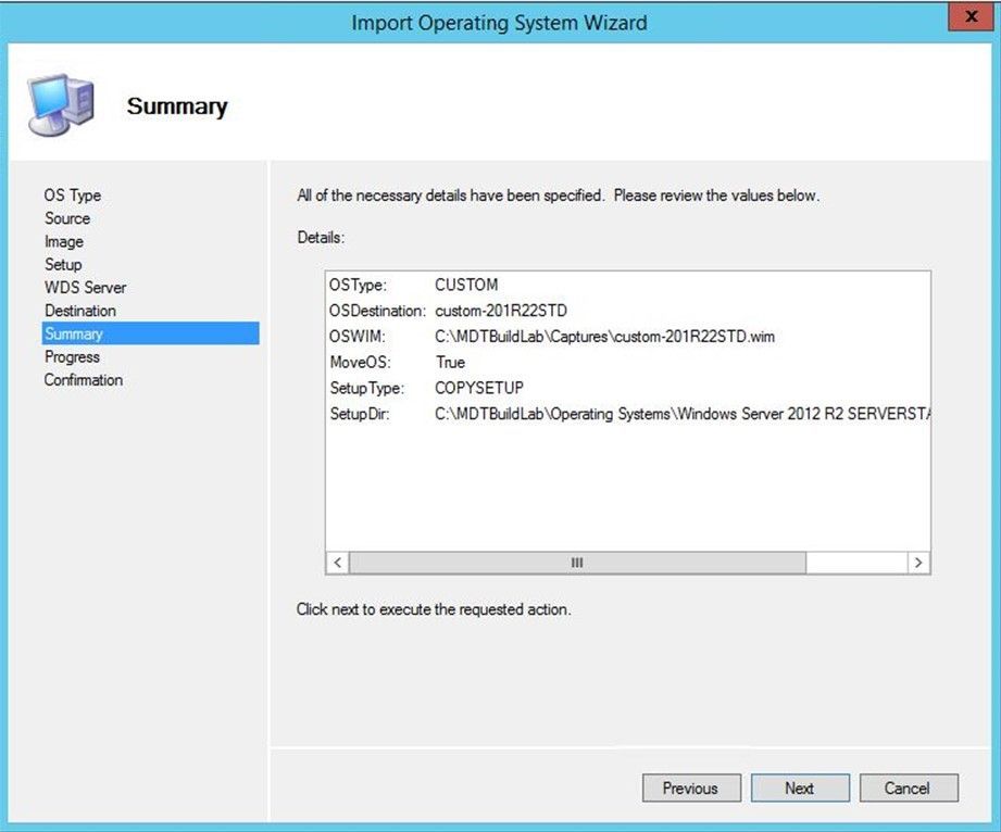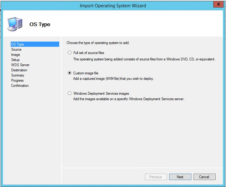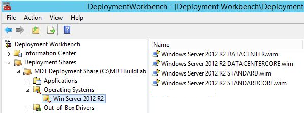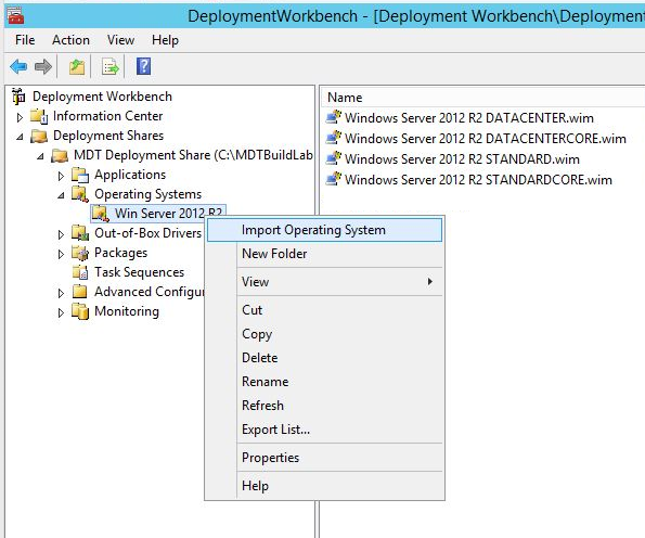 Following Charity's post, I first imported a set of OS install media files into MDT that I intended to work with (Windows Server 2012 R2 in this case).