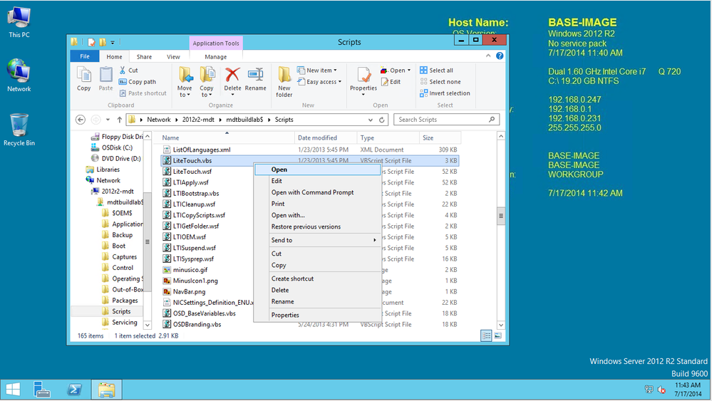 Once the build was configured to my liking, I connected to the MDT Deployment share from the built OS and kicked off 'LiteTouch.vbs'