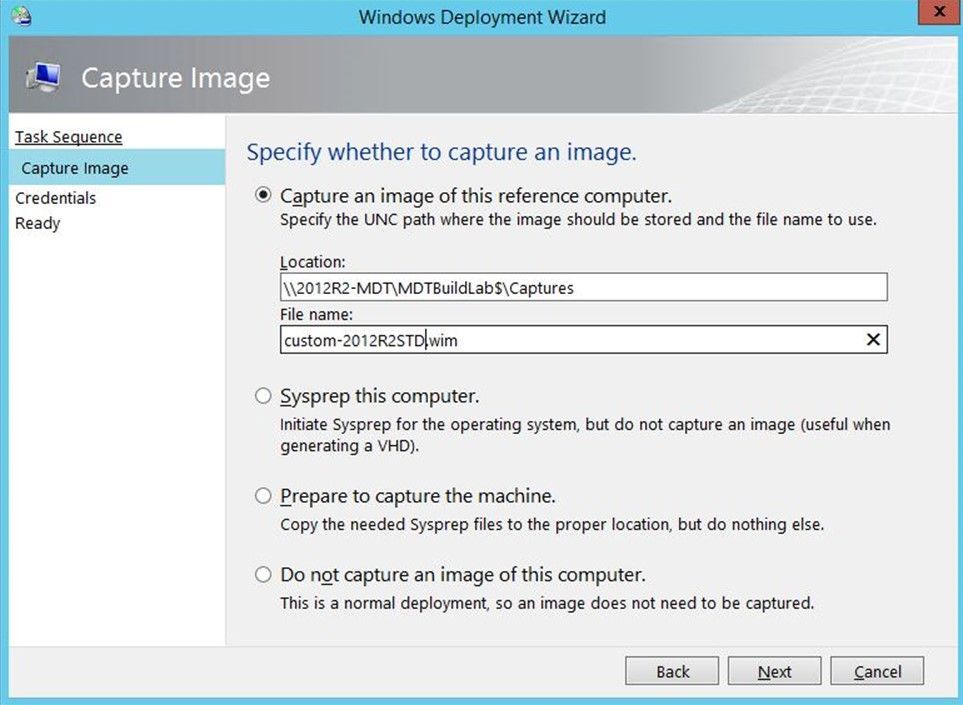 - Used the Capture Task Sequence to sysprep and capture the reference system into our MDT Workbench