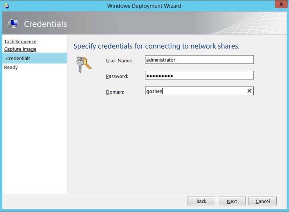 Enter credentials to connect back to the MDT server/share